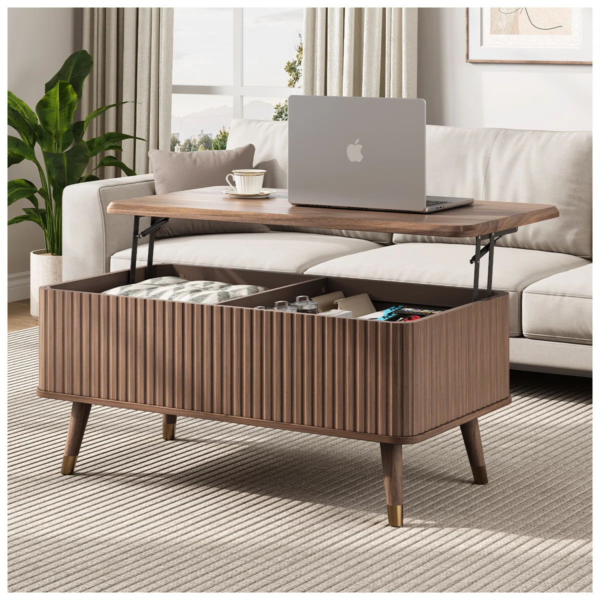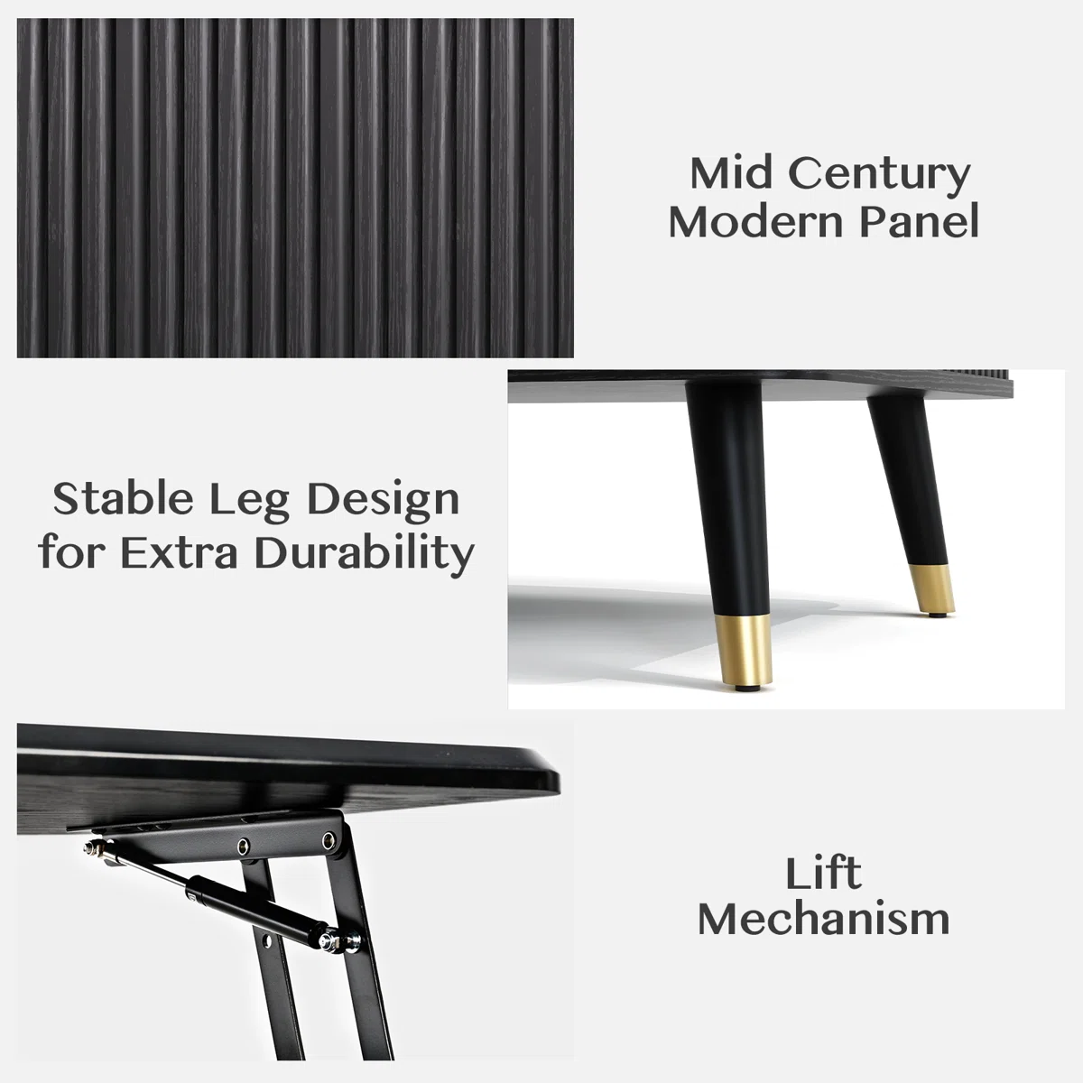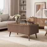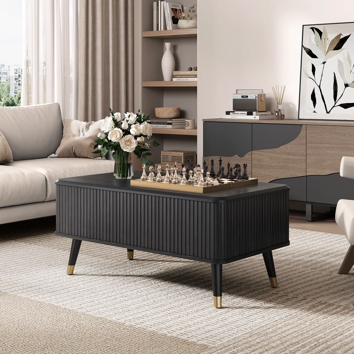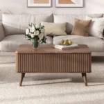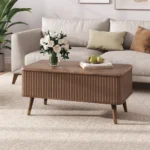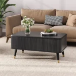 This modern wooden coffee table combines timeless elegance with practical design. Featuring a sleek black marble top and ribbed detailing, it adds a touch of luxury to any living space. The sturdy wooden frame includes an open lower shelf, perfect for storing books, magazines, or decorative accents. Stylish yet functional, this coffee table is an ideal centerpiece for contemporary interiors.