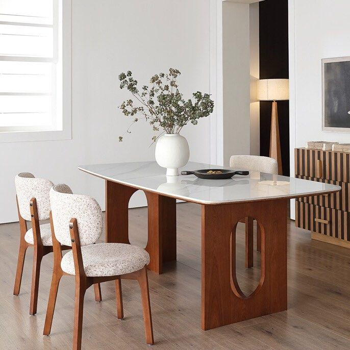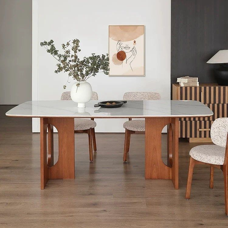 Home Dining Table Modern Marble Top Wooden Dining Table