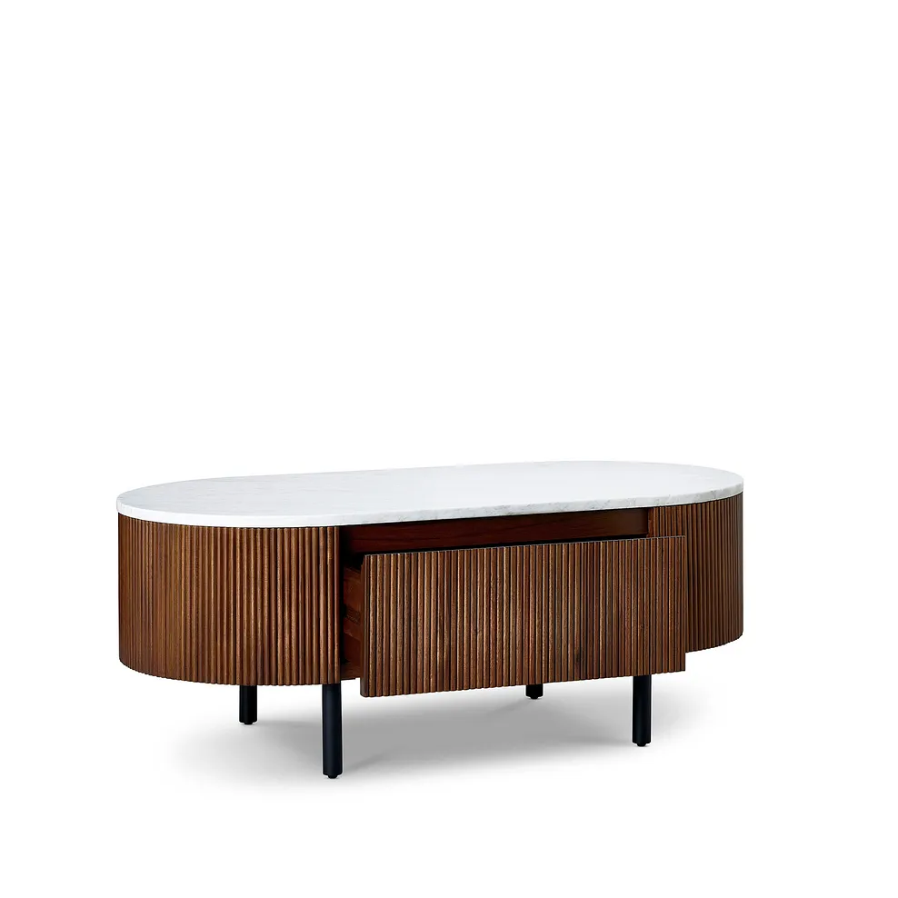 Home Coffee Table Wooden Oval Coffee Table Marble Top