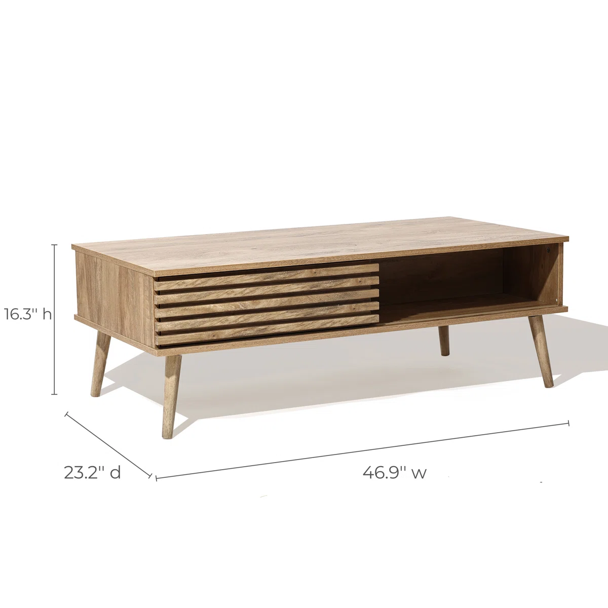 Wooden Coffee Table with Sliding Doors & Open Shelf