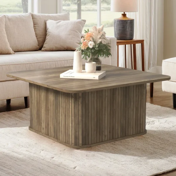 This modern wooden coffee table combines timeless elegance with practical design. Featuring a sleek black marble top and ribbed detailing, it adds a touch of luxury to any living space. The sturdy wooden frame includes an open lower shelf, perfect for storing books, magazines, or decorative accents. Stylish yet functional, this coffee table is an ideal centerpiece for contemporary interiors.