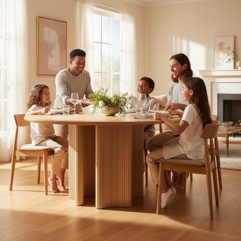 Home Dining Table Natural Fluted Base Wooden Dining Table