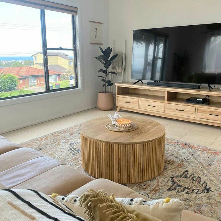 Solid Wood Round Drum Coffee Table – Walnut Finish