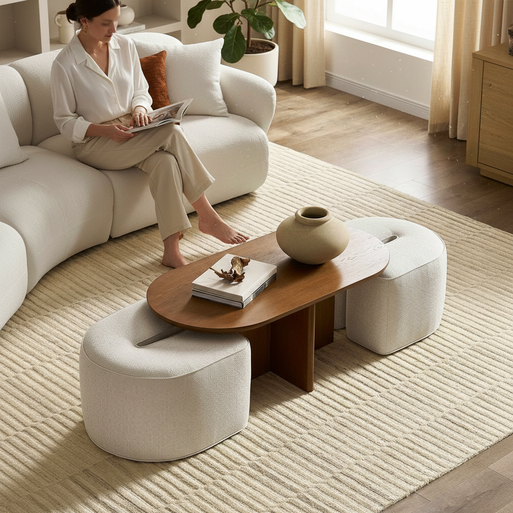Home Coffee Table Nesting Coffee Table with Upholstered Ottoman