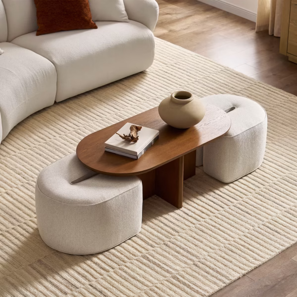 Nesting Coffee Table with Upholstered Ottoman