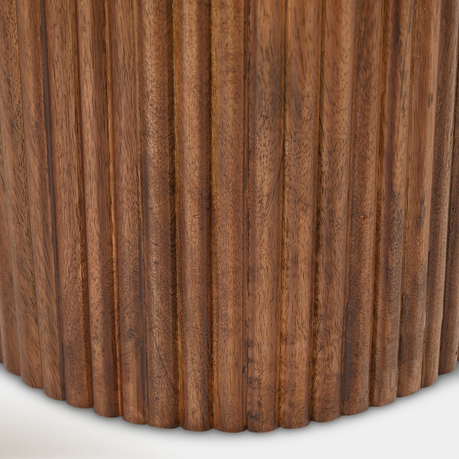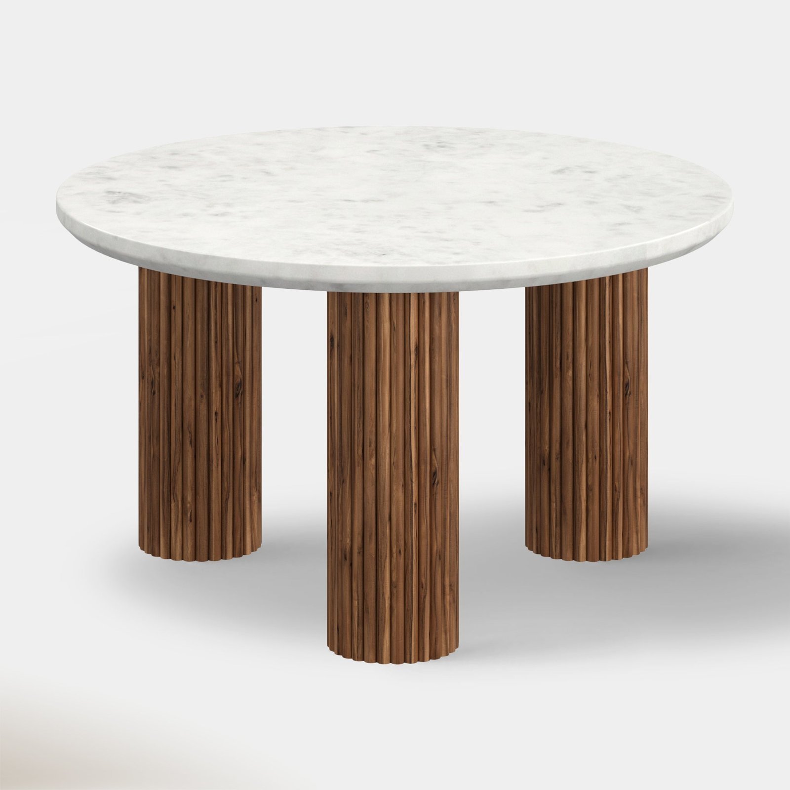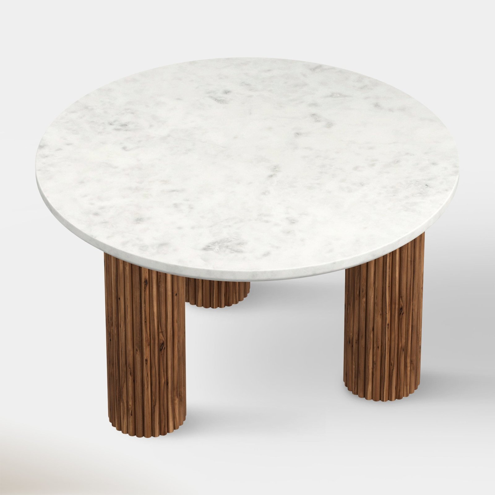 Round Marble Coffee Table with Fluted Wooden Base