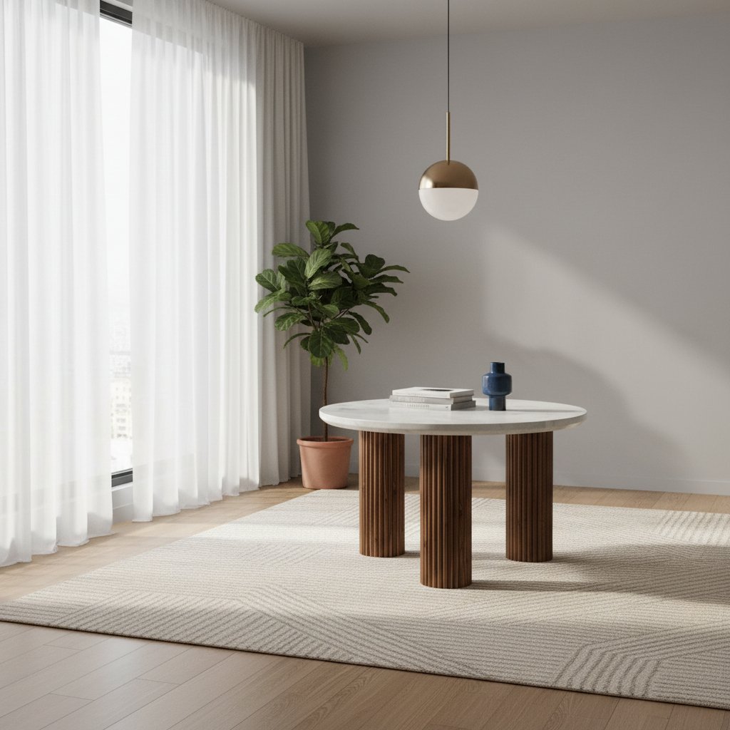 Be the first to review “Round Marble Coffee Table with Fluted Wooden Base” Cancel reply