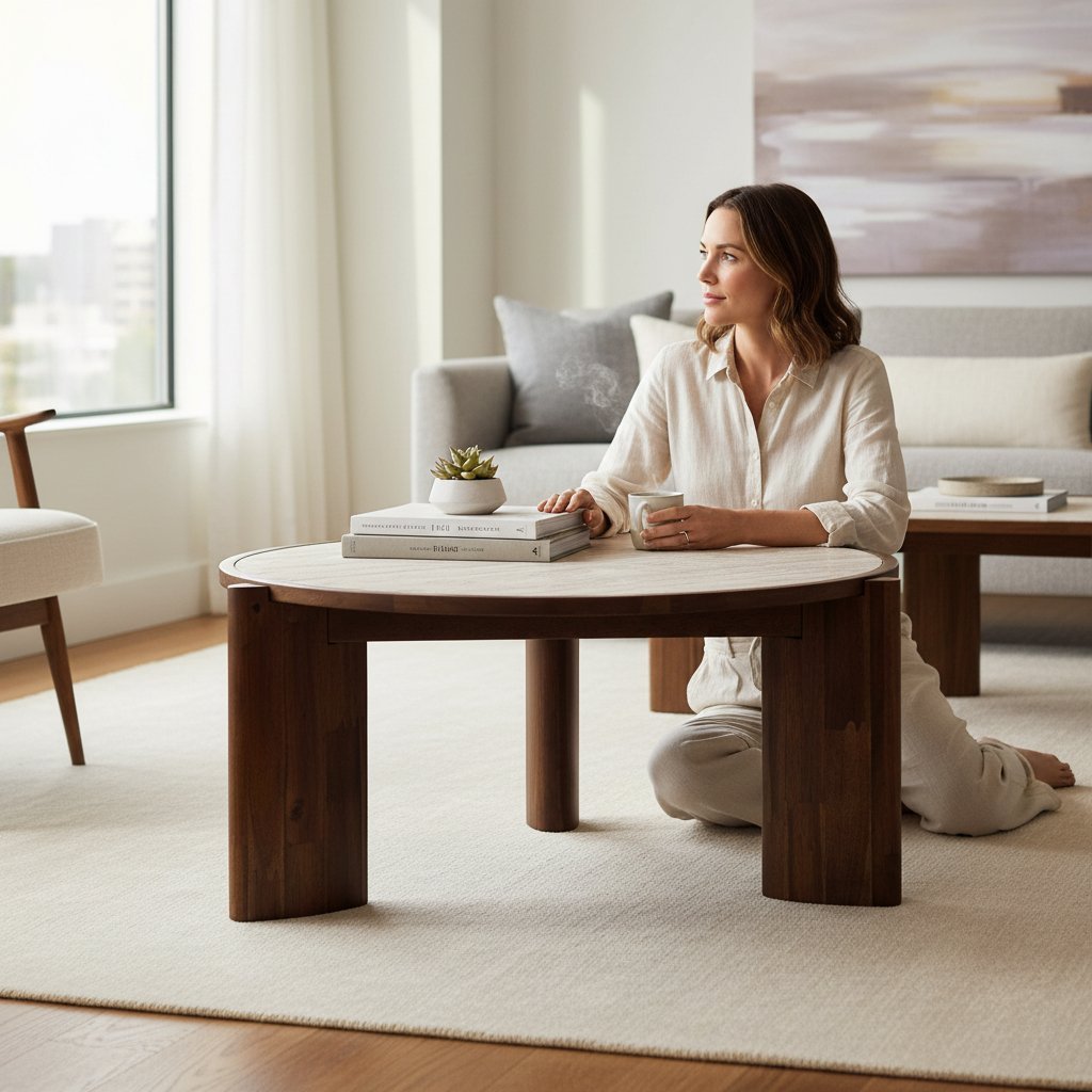 Modern Sculptural Round Coffee Table ₹35,999 Original price was: ₹35,999.₹25,999Current price is: ₹25,999.