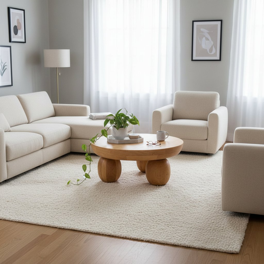 Round Solid Wood Coffee Table for Living Room