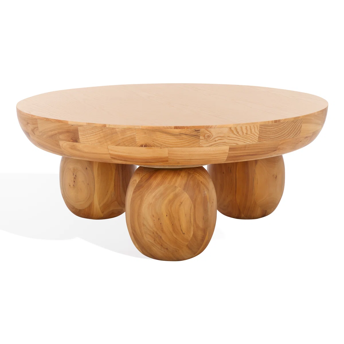 Round Solid Wood Coffee Table for Living Room