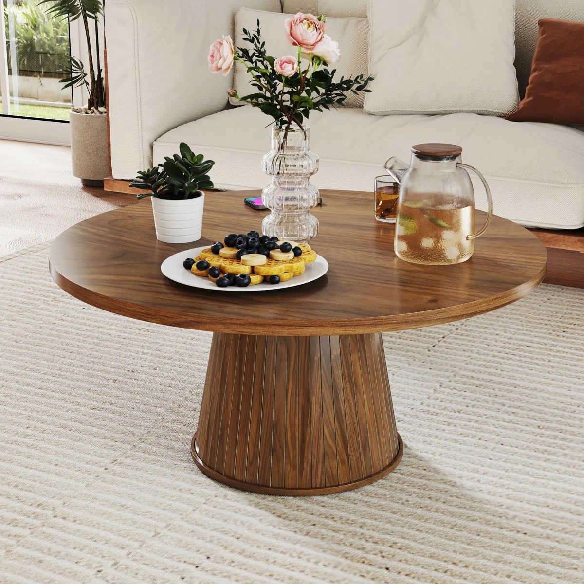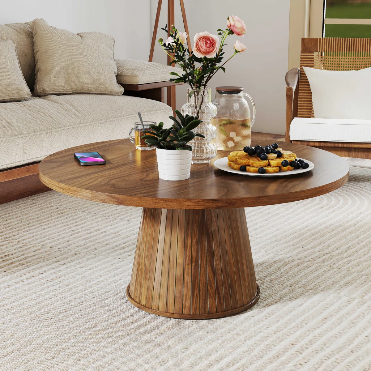 Category: Coffee Table Tags: coffee table, Round Coffee Table, Walnut Coffee Table, Wooden Coffee Table