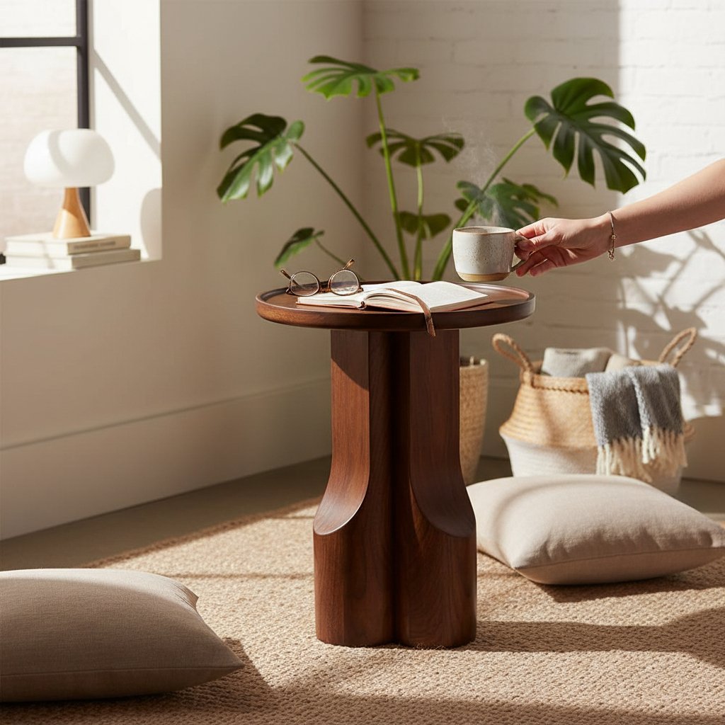 Brand : Vm Antique Decor Material : Solid wood Dimension : Dia. 37 x H46cm Finish : Smooth natural wood finish Colour : Warm natural brown Assembly : Assembly Required Country of Origin : India Care : Clean Surfaces With a Dry Cloth.