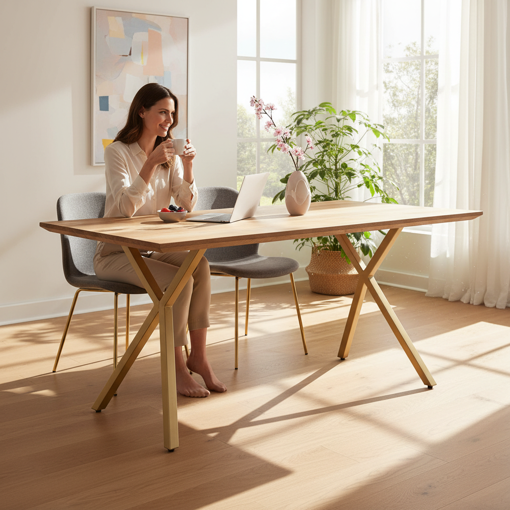 Be the first to review “Solid Wood Dining Table with Metal Cross Legs” Cancel reply