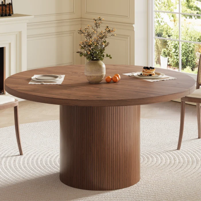 Wooden Dining Table with Ribbed Panel Base and 6 Chairs