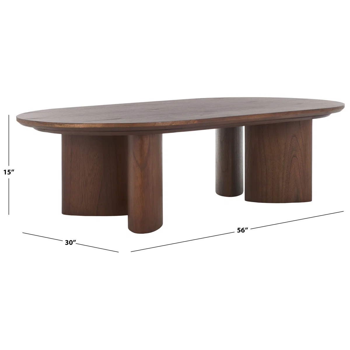 Solid Wood Oval Coffee Table for Living Room