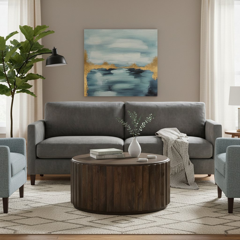 Solid Wood Round Drum Coffee Table for Living Room