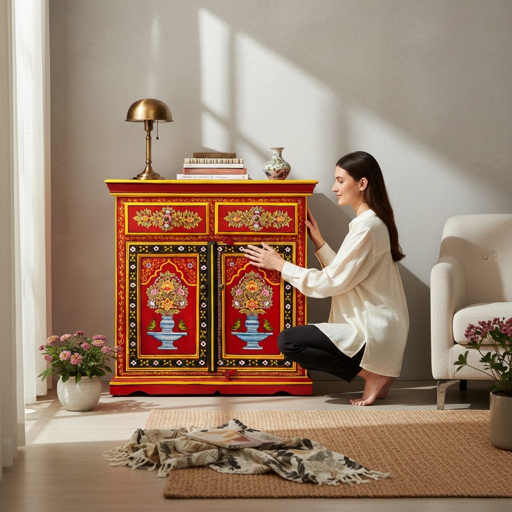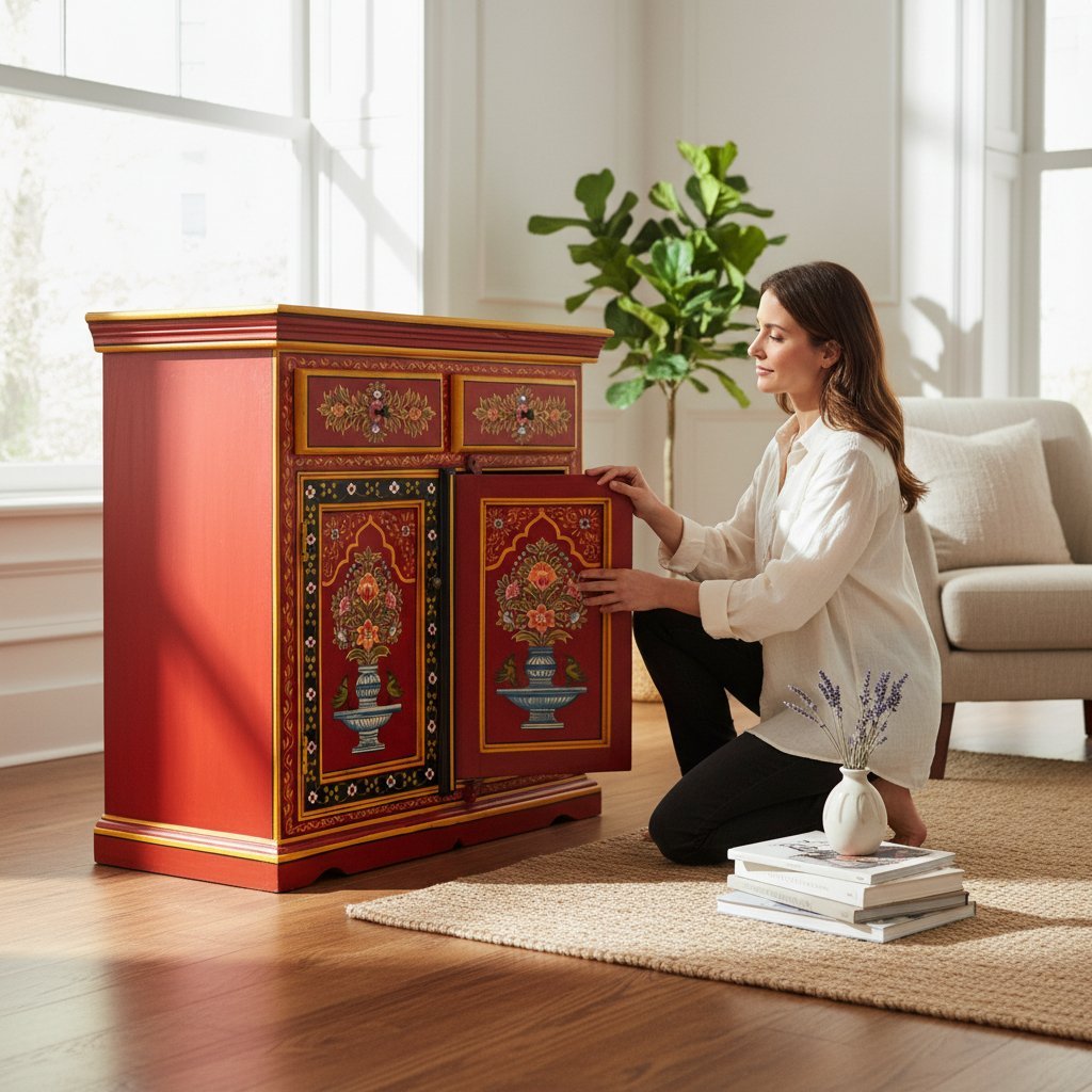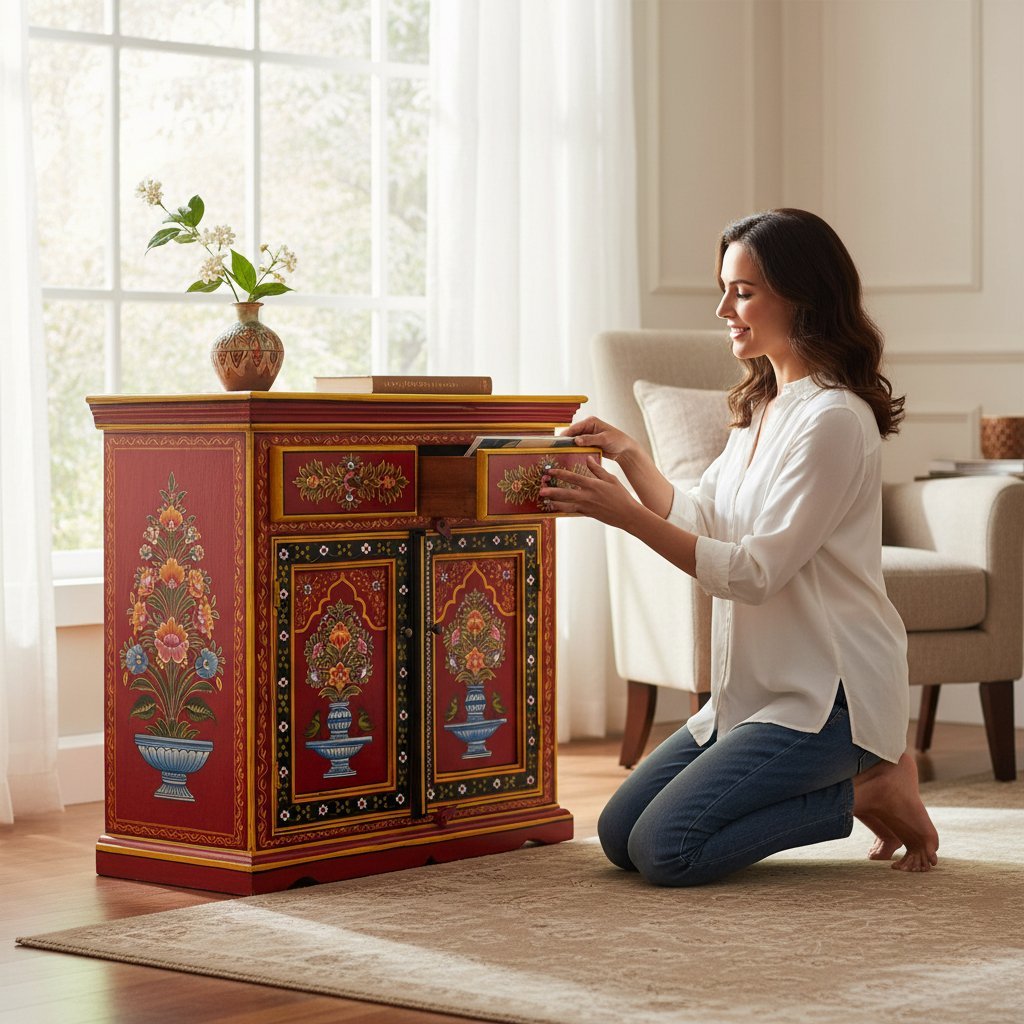 Hand Carved Wooden Bedside Dressing Table with Drawers