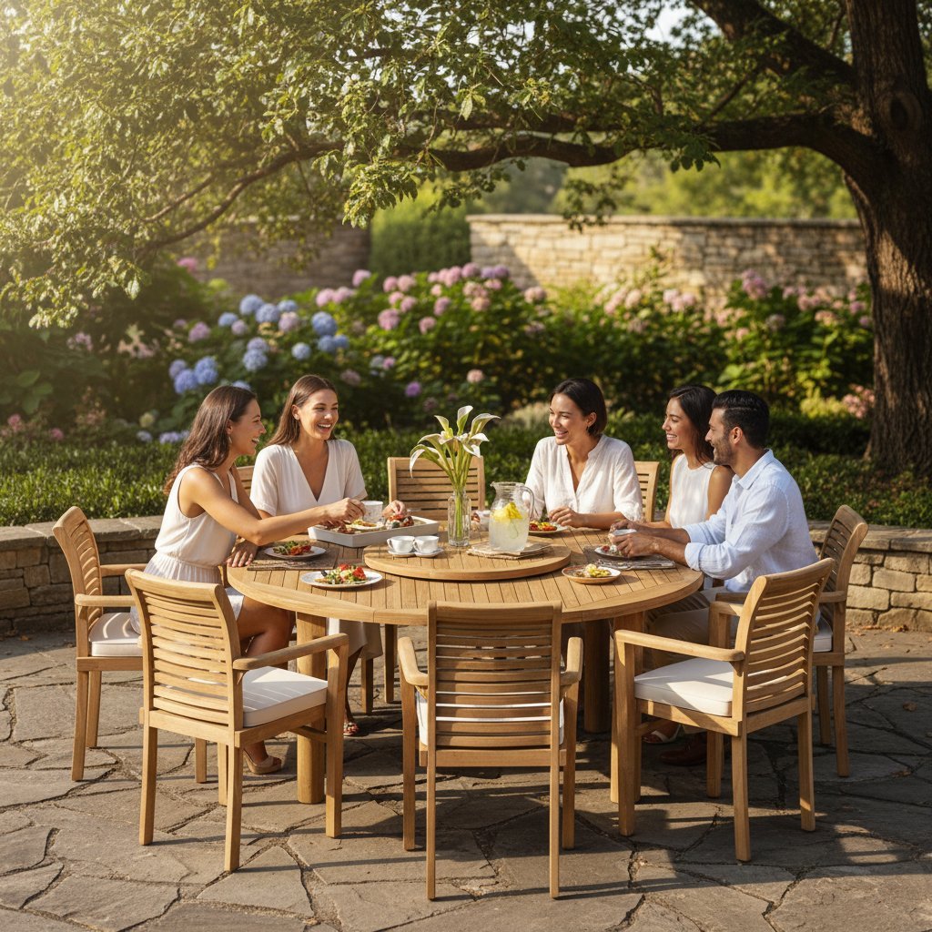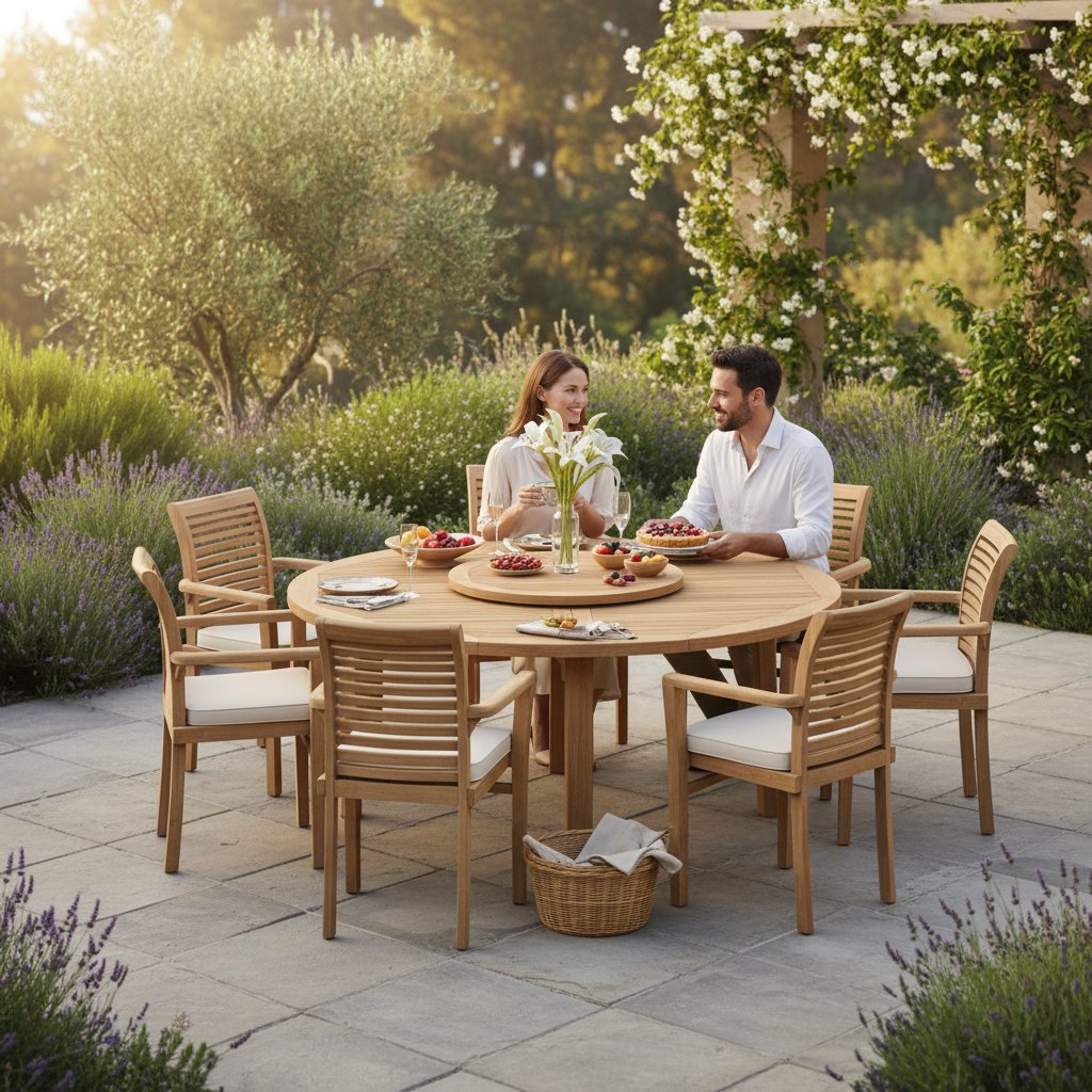 Teak Wood 180cm Round Stacking Set 8 Chair