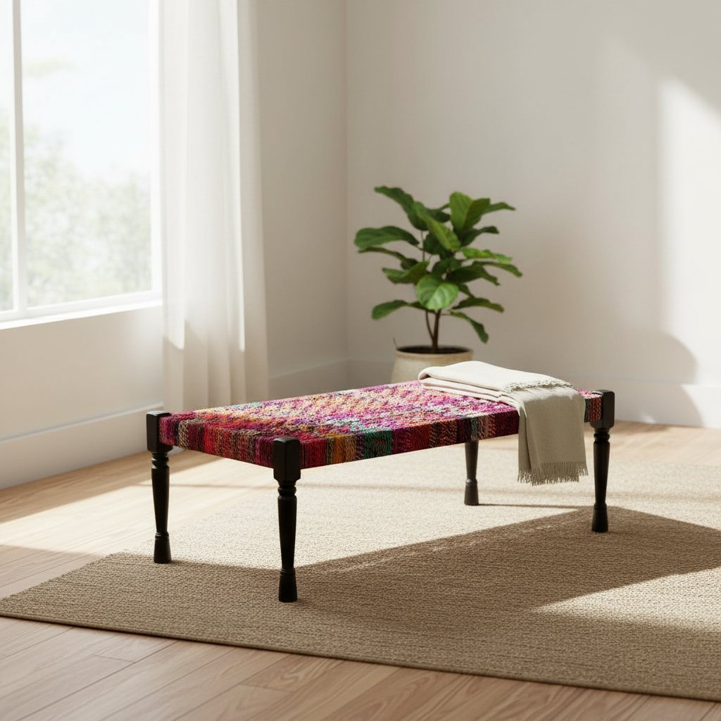 Home Charpai Traditional Multicolor Charpai Bench