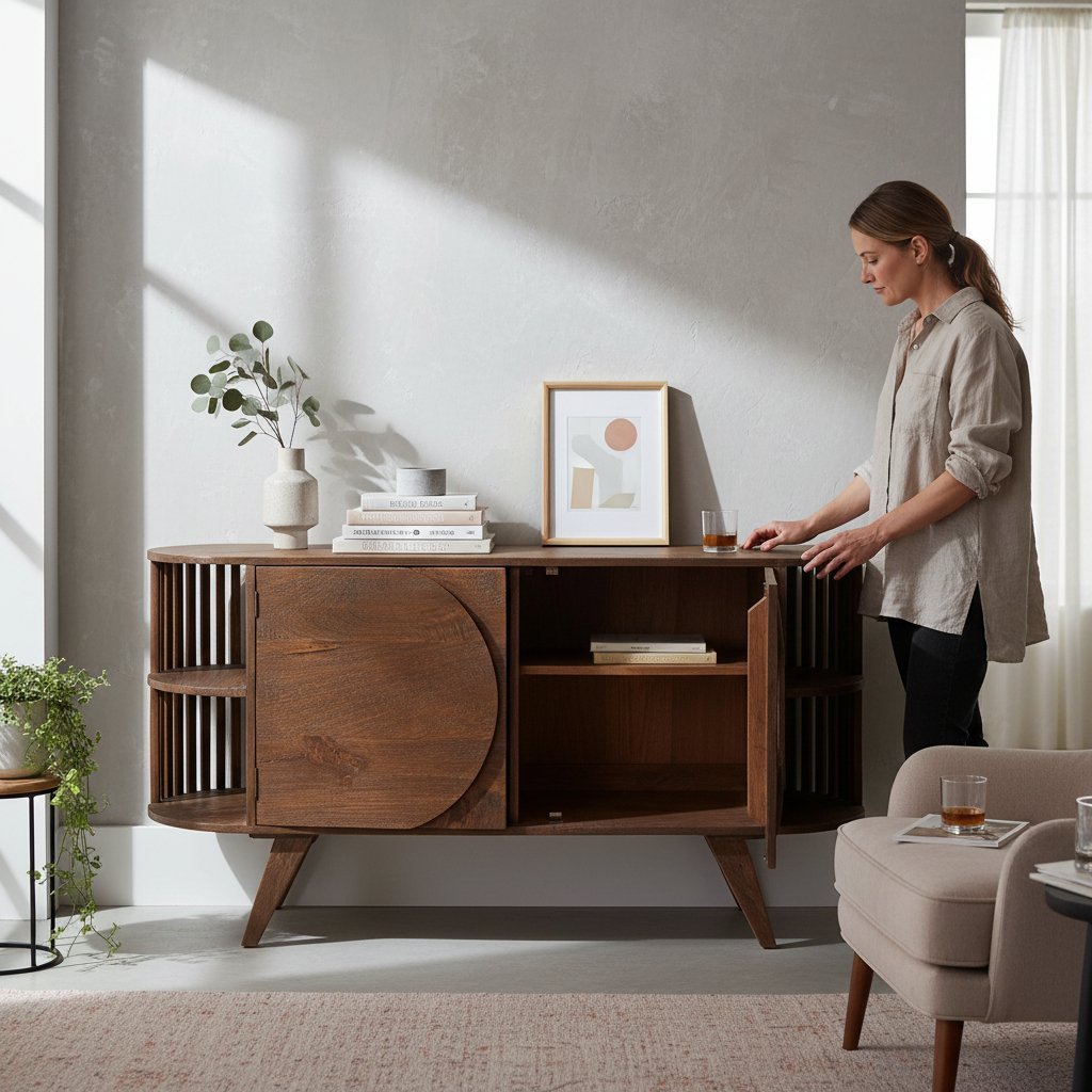 Fluted Wooden Sideboard Cabinet