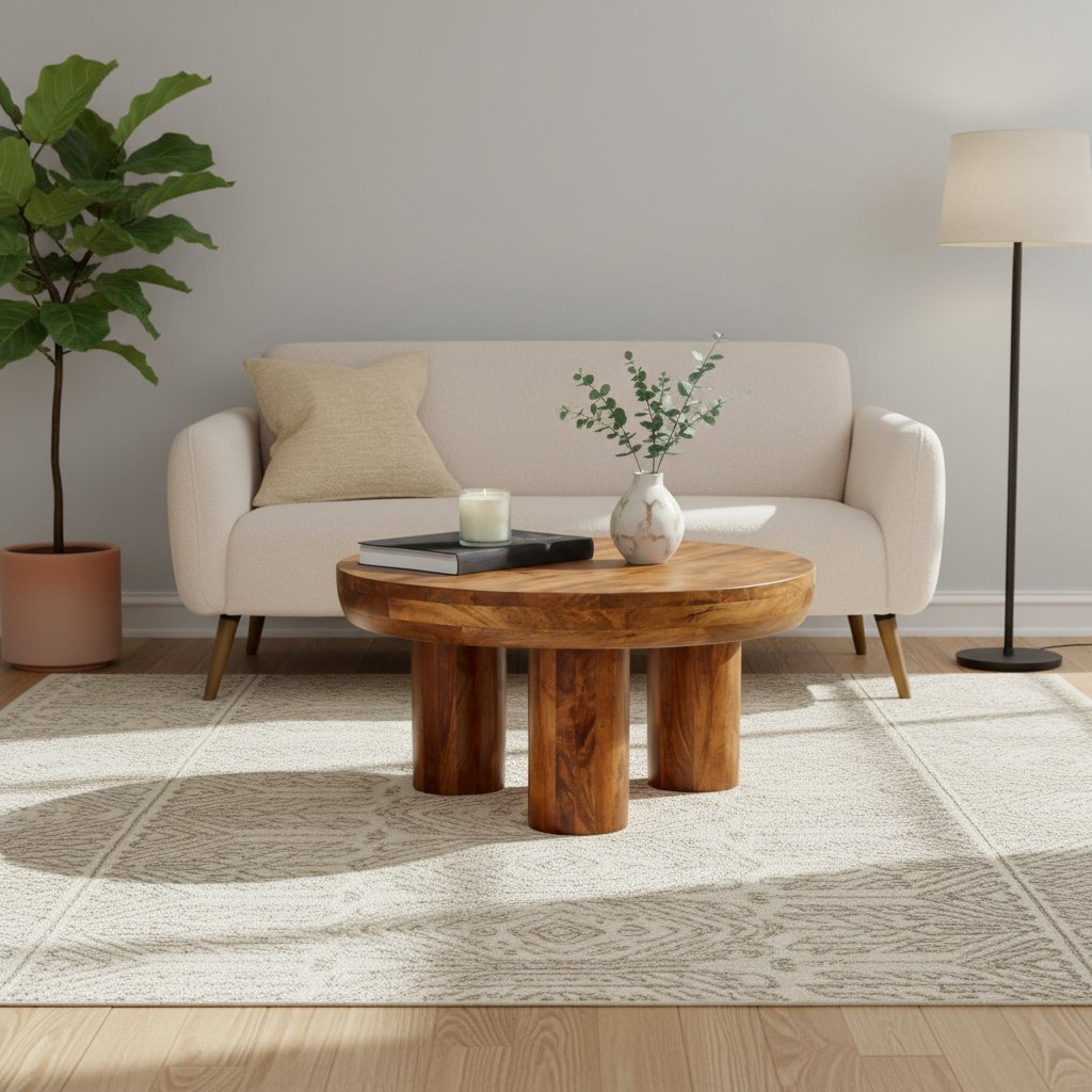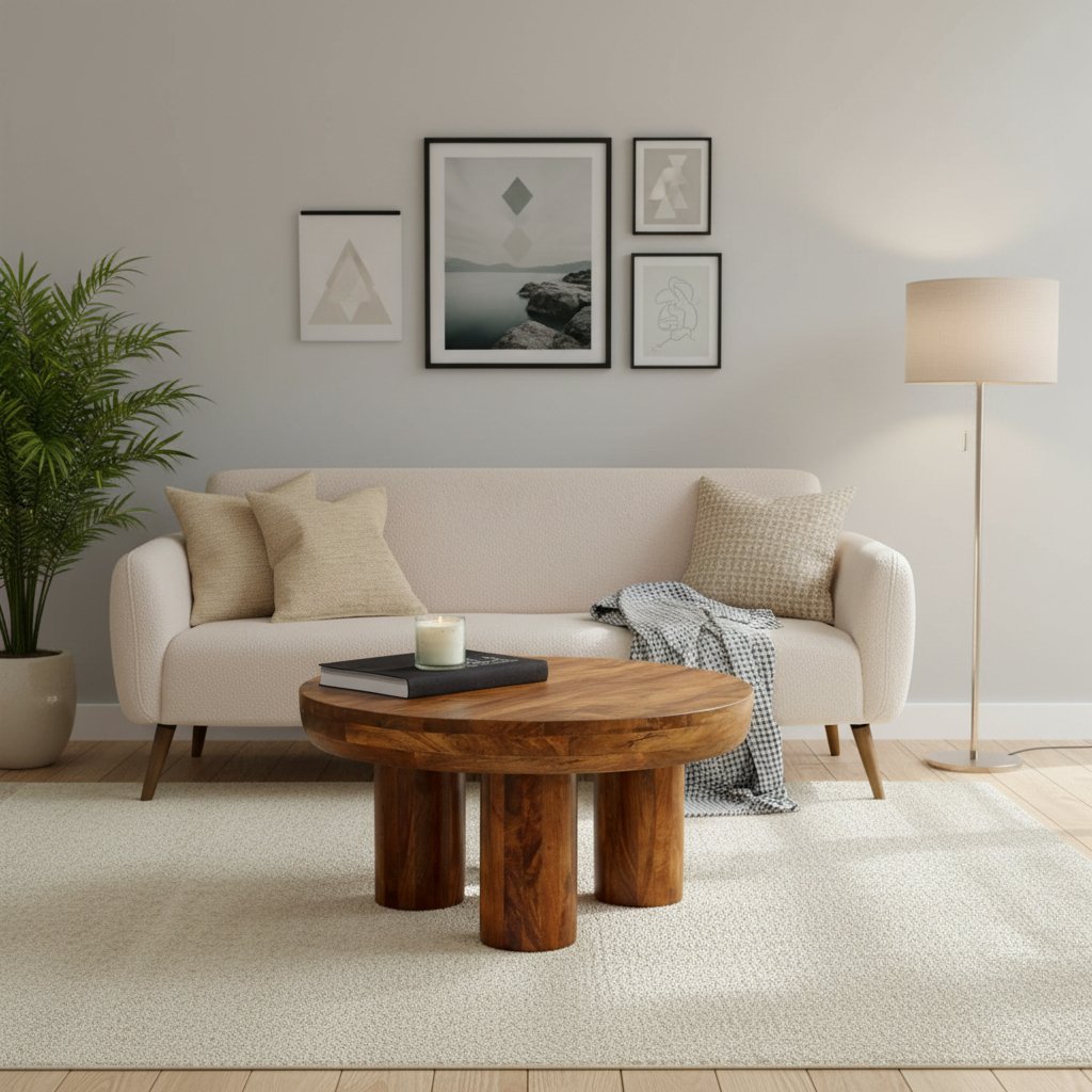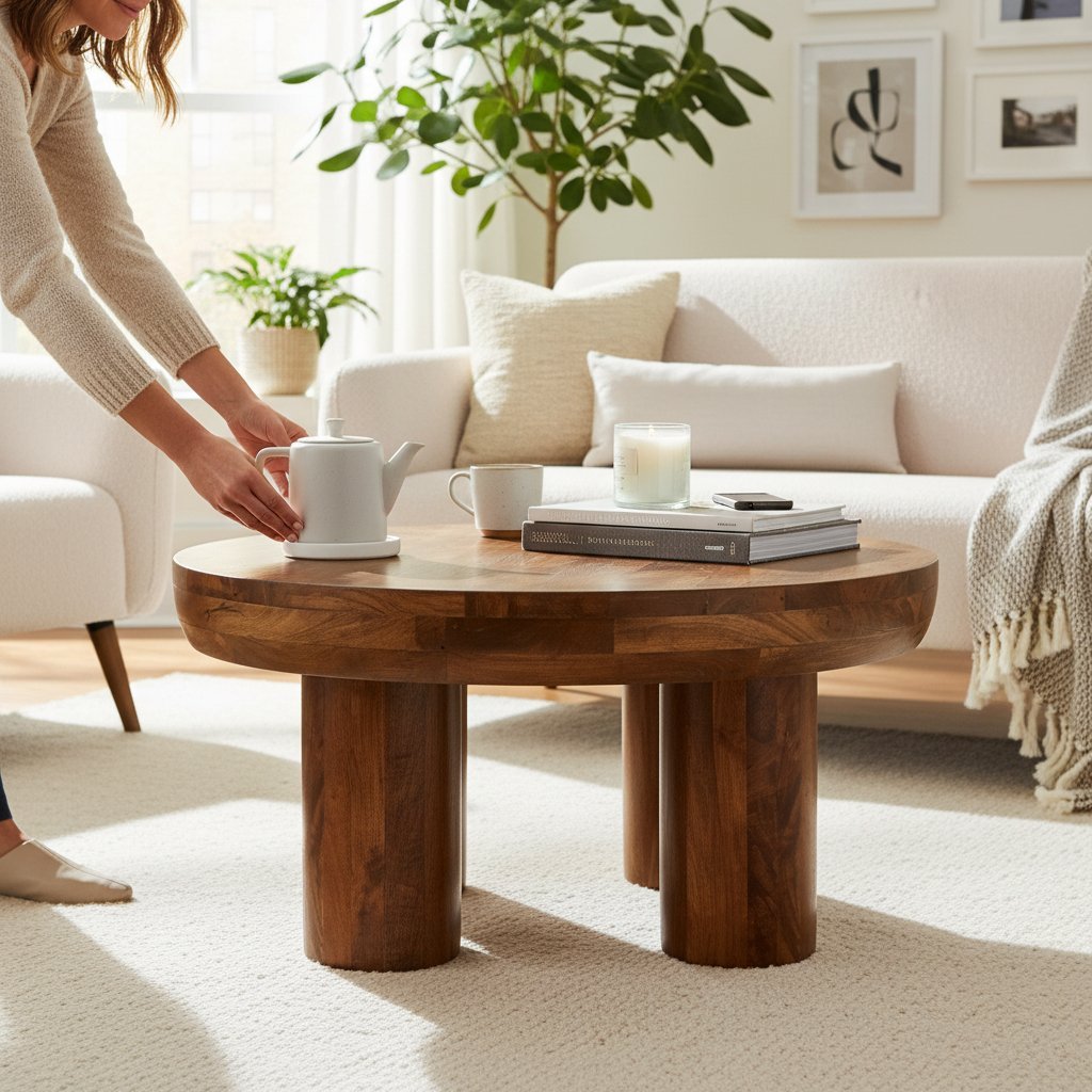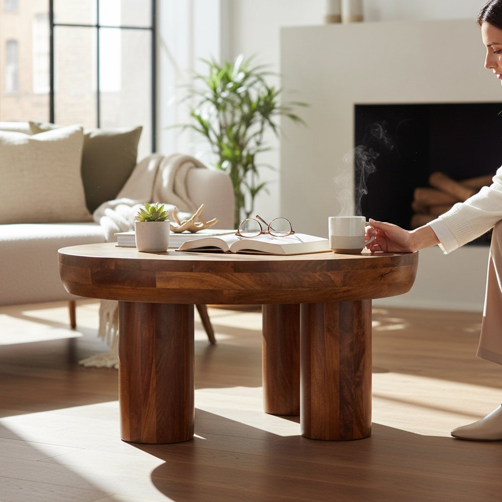 Home Coffee Table Wooden Round Pedestal Coffee Table