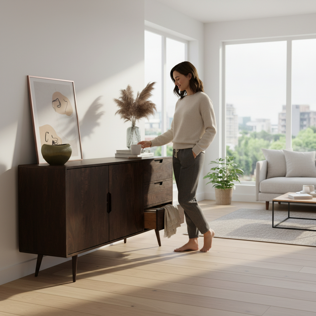 Wooden Walnut Sideboard ₹25,999 Original price was: ₹25,999.₹19,999Current price is: ₹19,999.