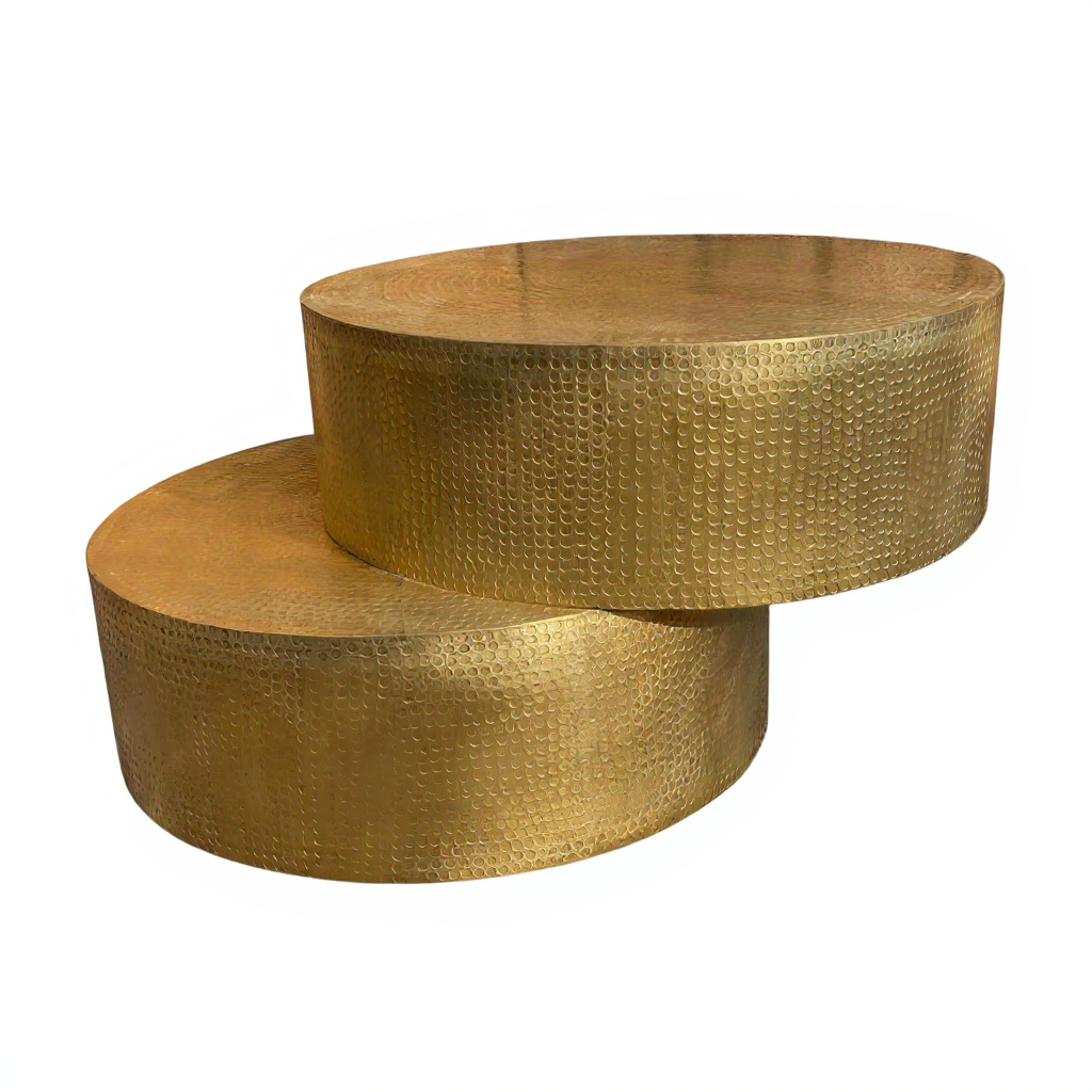 Home Coffee Table Wood Hammered Brass Round Coffee Table