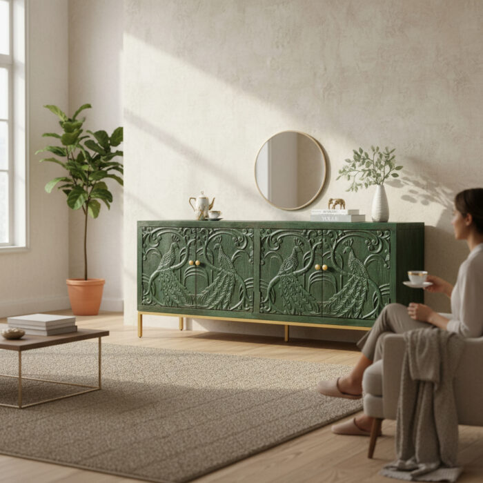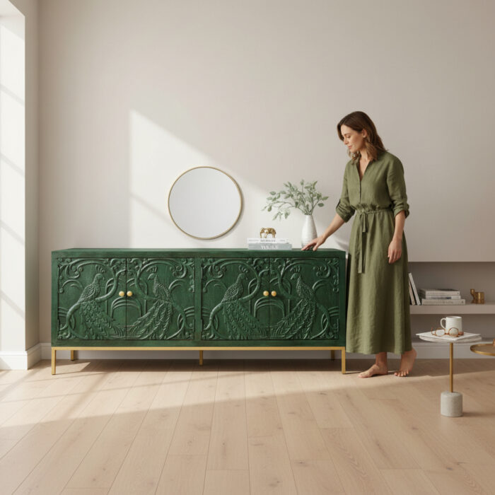 Bring refined elegance and practical storage into your home with this modern wooden sideboard. Designed with a ribbed front detail and finished with a luxurious black marble top, it strikes the perfect balance between style and functionality. Featuring spacious cupboards and smooth drawers, it provides ample room for storing dinnerware, glassware, or everyday essentials. Ideal for dining rooms, living areas, or hallways, this sideboard is both a statement piece and a versatile storage solution.