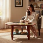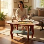 Solid Wood Round Drum Coffee Table – Walnut Finish