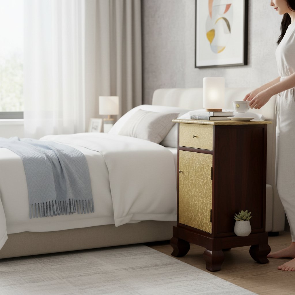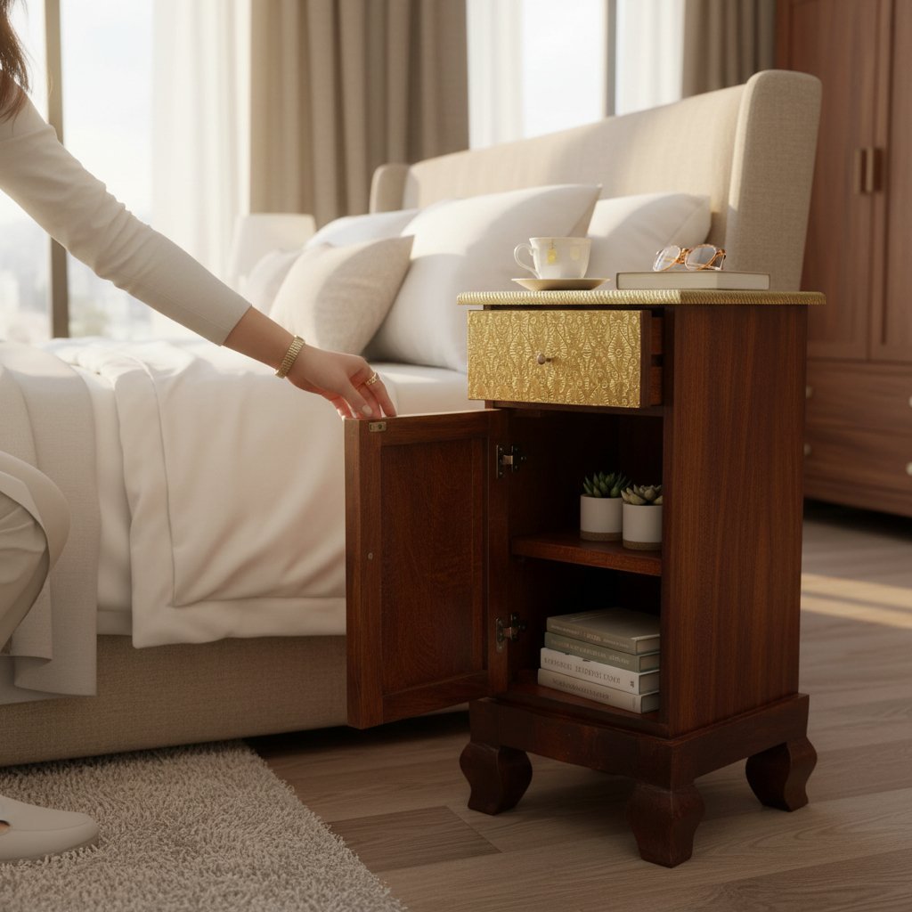 Wooden Painted Bedside-Side Cabinet With Desk Drawer