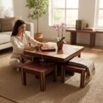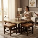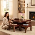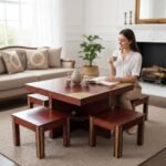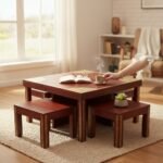 Wooden Round Drum Coffee Table With 4 Stool ₹25,999 Original price was: ₹25,999.₹19,999Current price is: ₹19,999.