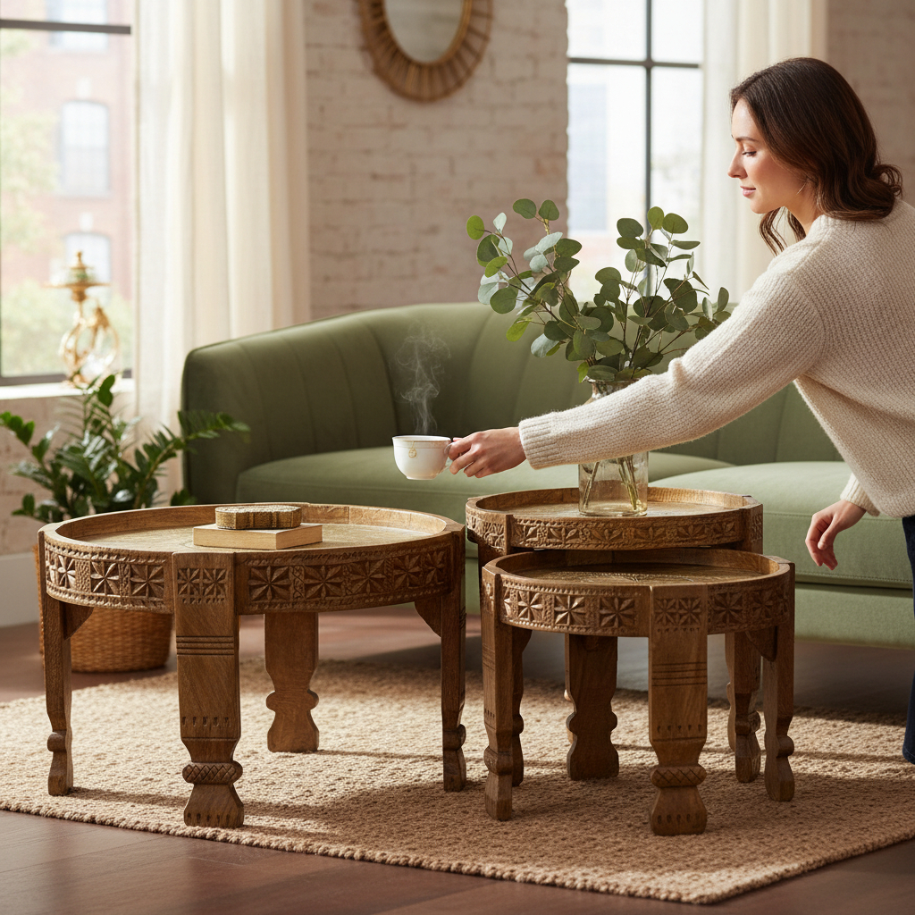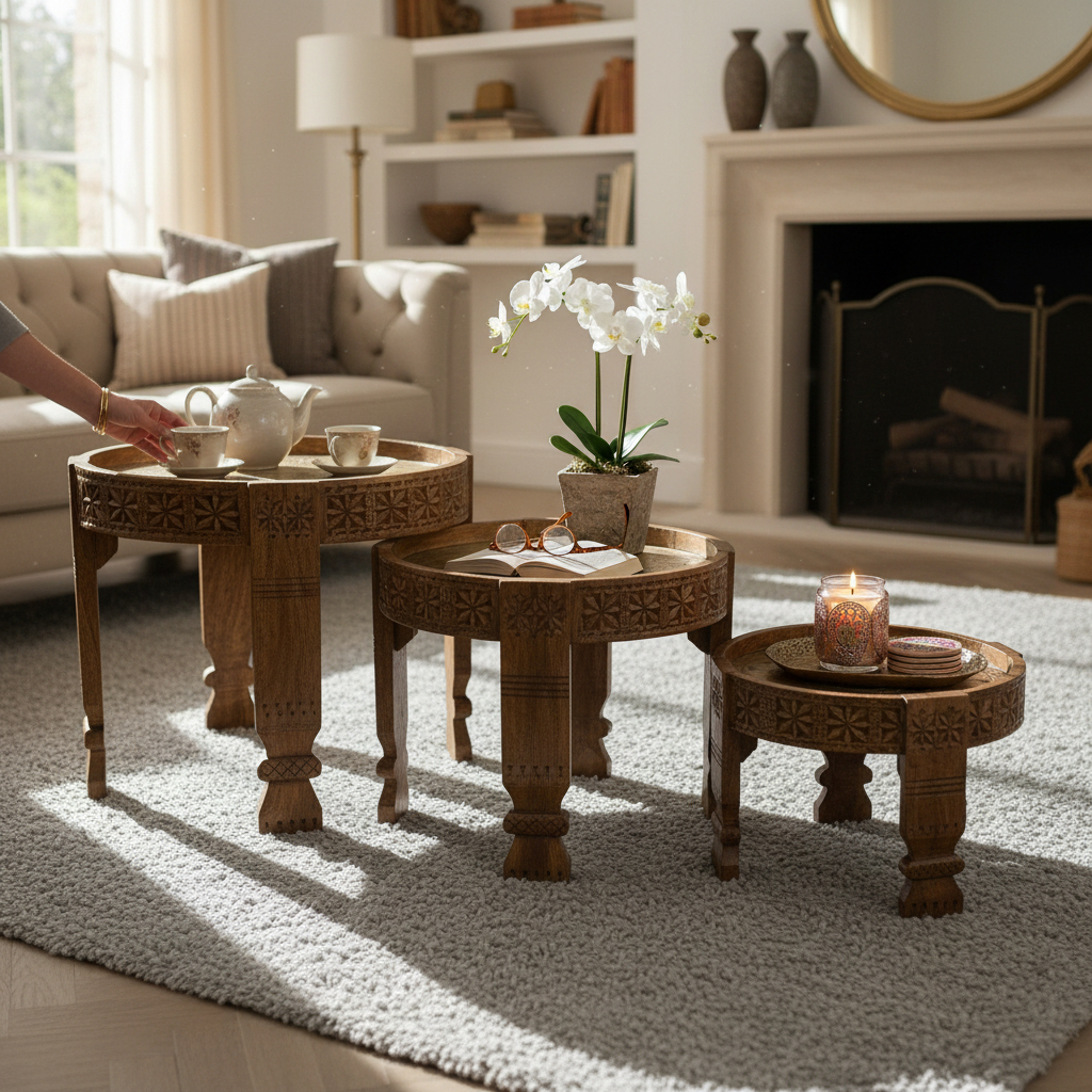 Be the first to review “Wooden Carved Coffee Table Set of 3” Cancel reply