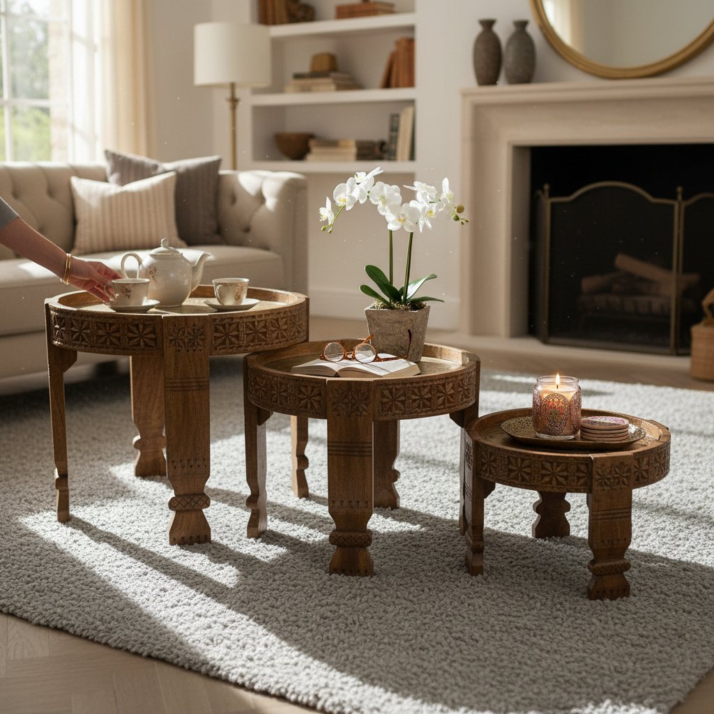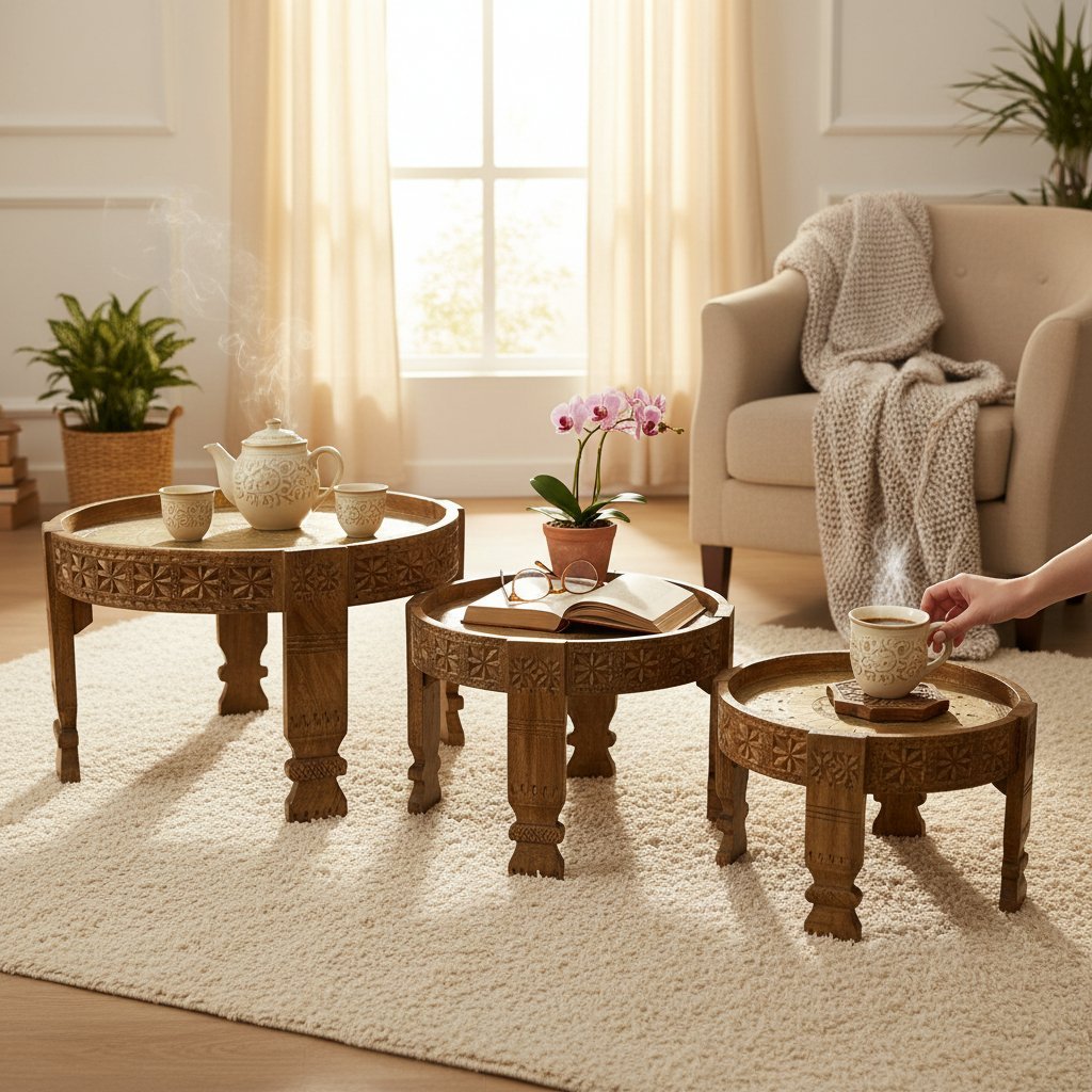 Wooden Carved Coffee Table Set of 3