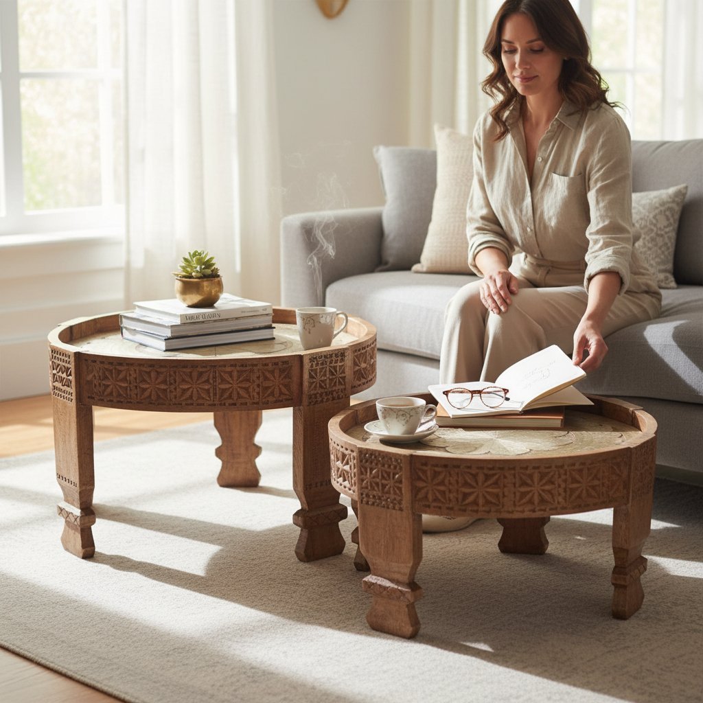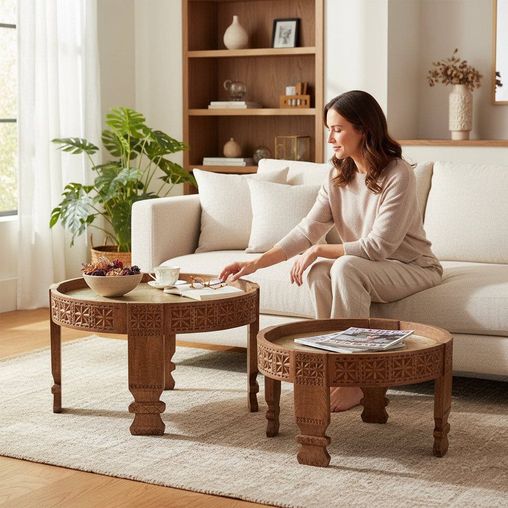 Be the first to review “Wooden Carved Coffee Table Set of 3” Cancel reply