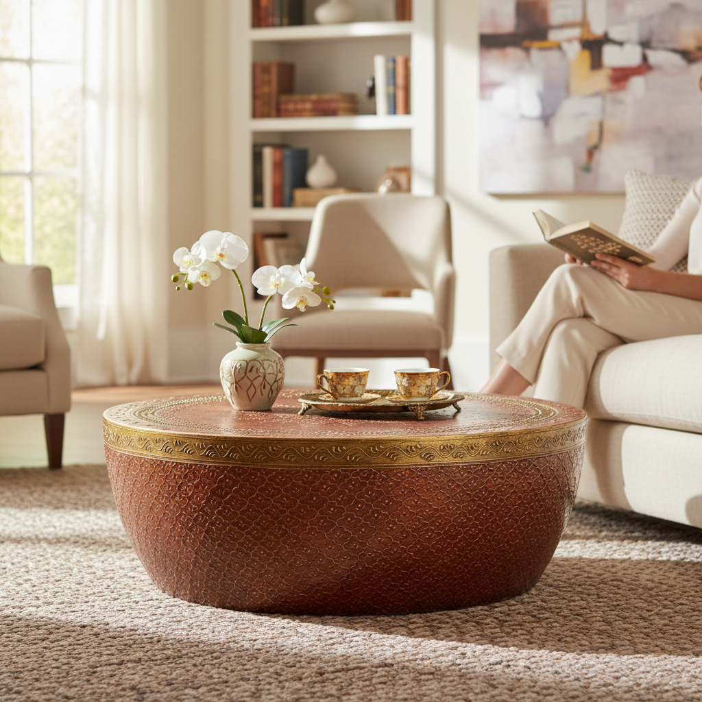 Home Coffee Table Wooden Copper Painted Central Coffee Table