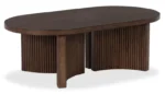 This modern wooden coffee table combines timeless elegance with practical design. Featuring a sleek black marble top and ribbed detailing, it adds a touch of luxury to any living space. The sturdy wooden frame includes an open lower shelf, perfect for storing books, magazines, or decorative accents. Stylish yet functional, this coffee table is an ideal centerpiece for contemporary interiors.