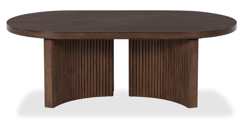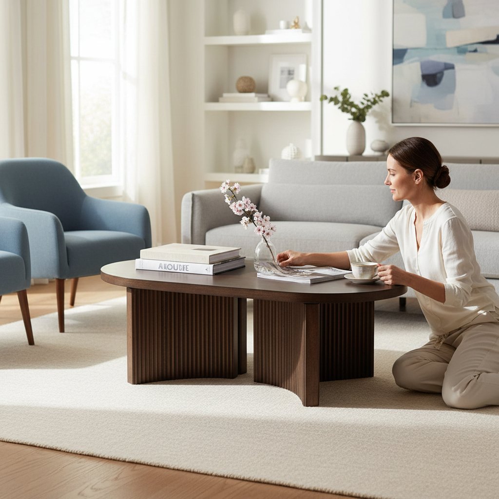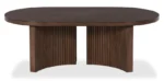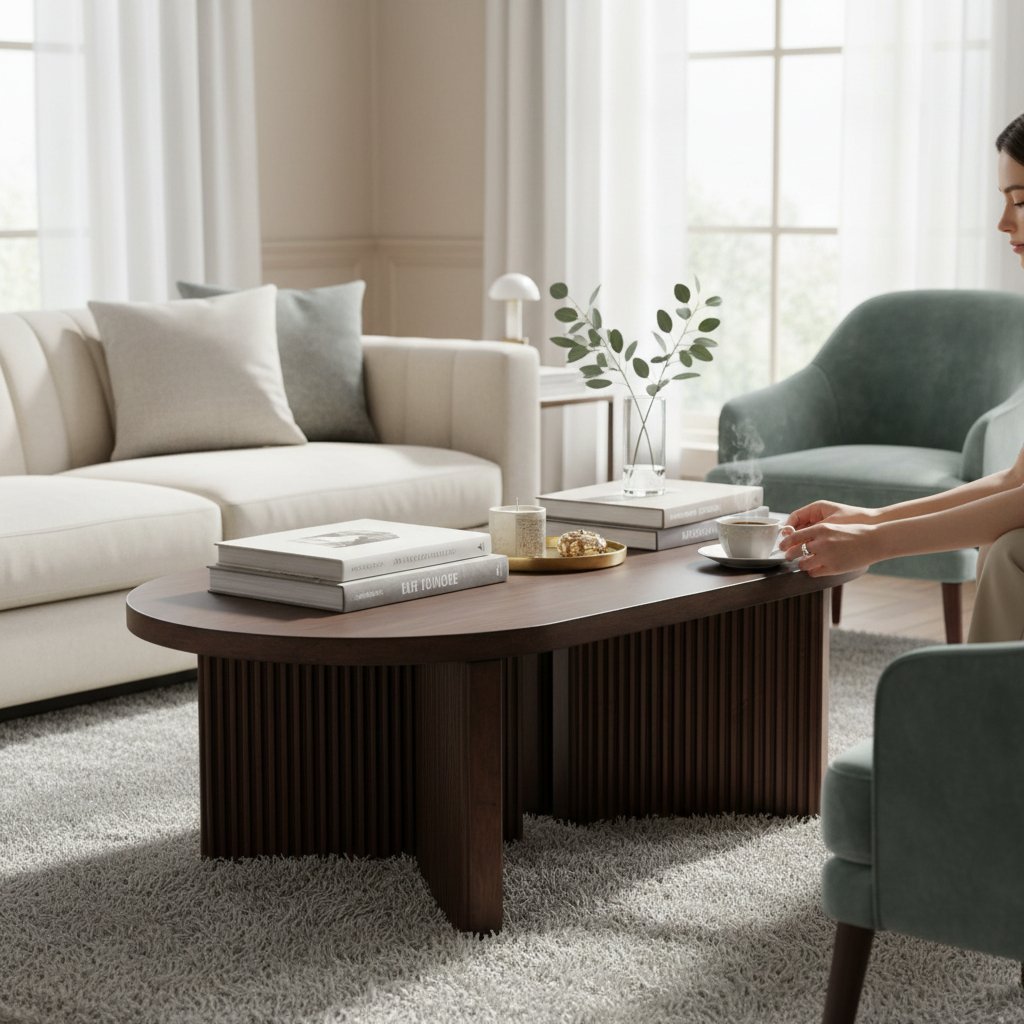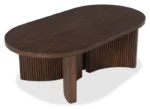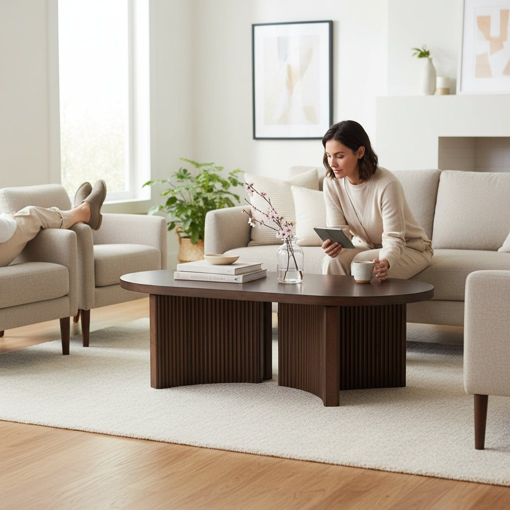 Modern Oval Wooden Coffee Table with Sliding Doors & Storage