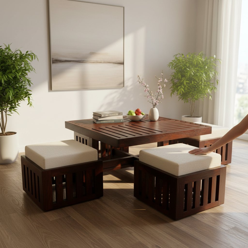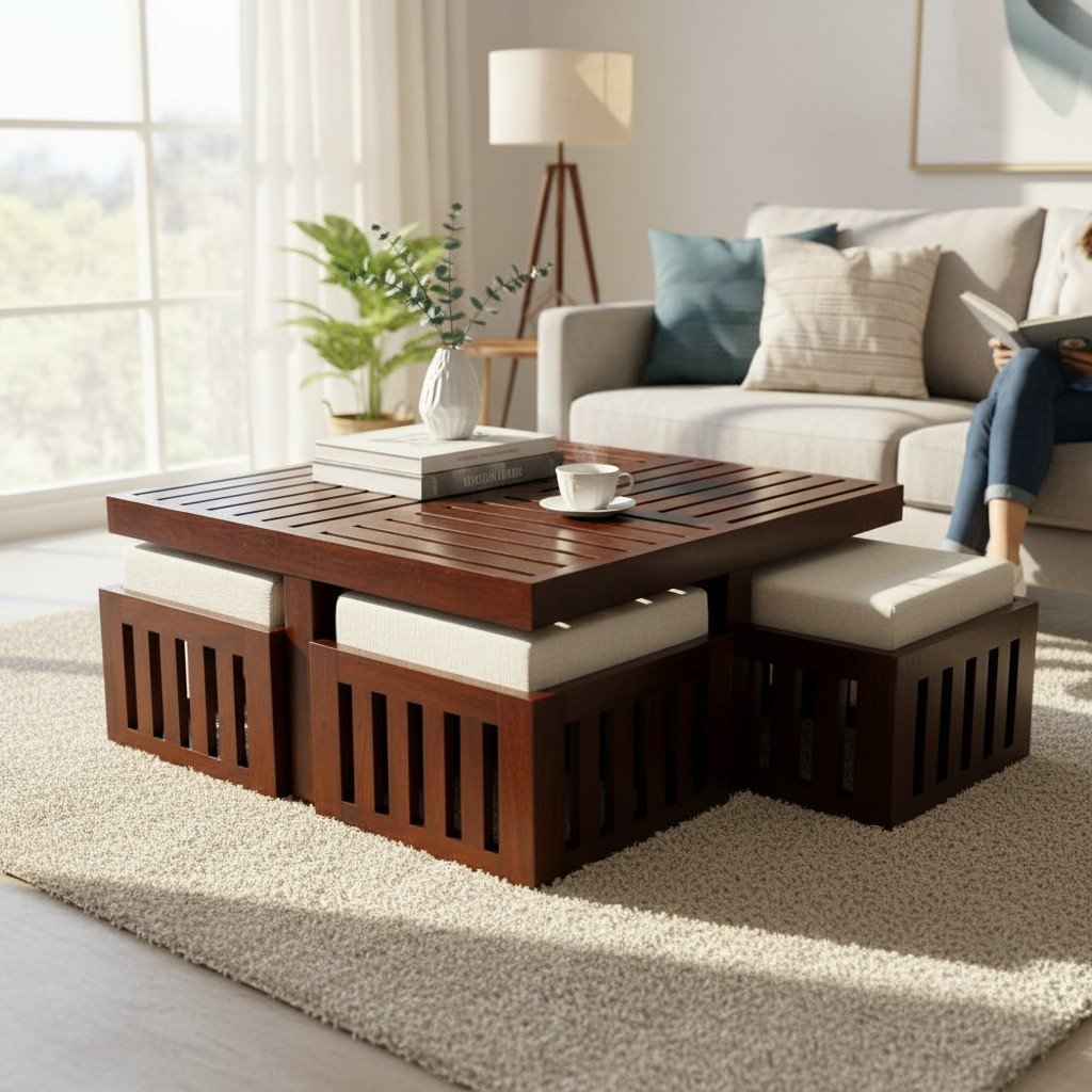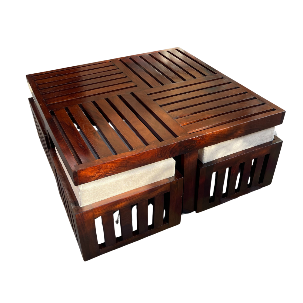 Wooden Coffee Table With Seating Stools