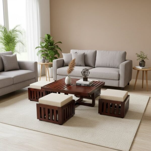 Be the first to review “Wooden Coffee Table With Seating Stools” Cancel reply