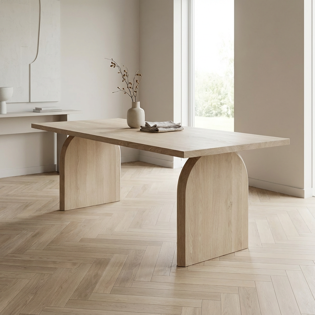 • Modern Sculptural Base – Two curved pedestal legs offer stability and artistic appeal.