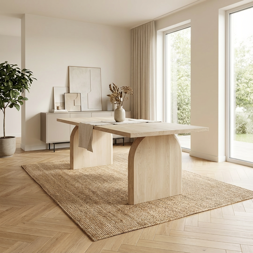 Transform your dining space with this elegant round dining table, crafted in a light natural wood finish that brings warmth, balance, and Scandinavian-inspired simplicity to any modern home. Its sculptural column base and smooth circular top create a calming, contemporary centerpiece—ideal for intimate meals, stylish gatherings, or minimalist interior settings. This table seamlessly blends functionality with refined design, making it a timeless addition to your modern living room or dining area.