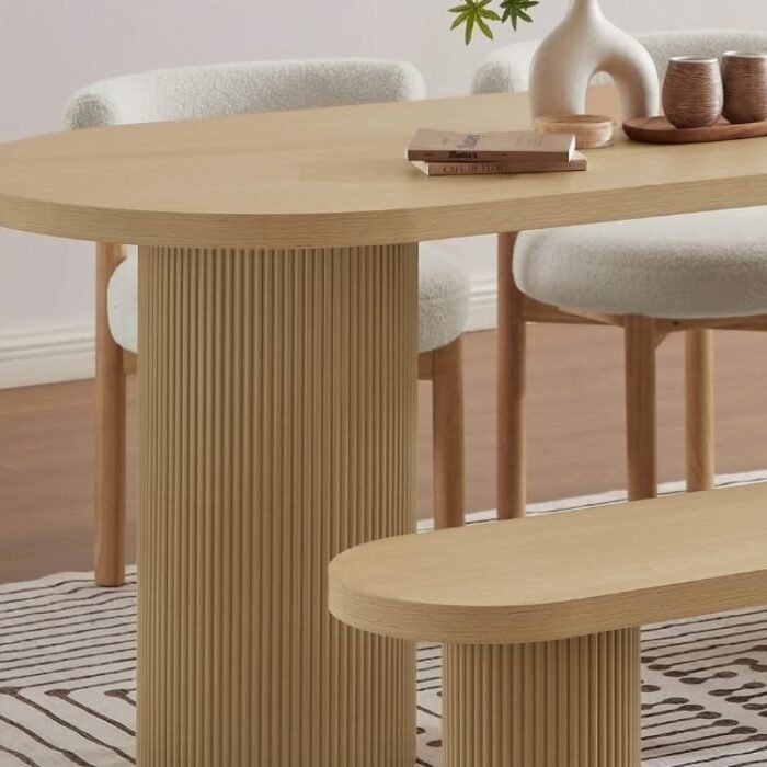 70.8” Stone Top Solid Wood Base Oval Modern Dining Table
