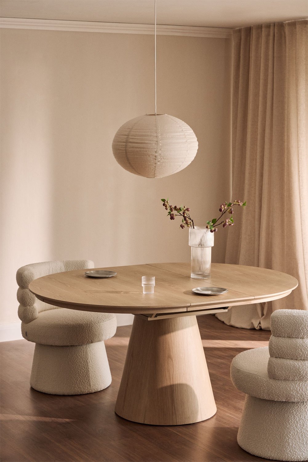 Transform your dining space with this elegant round dining table, crafted in a light natural wood finish that brings warmth, balance, and Scandinavian-inspired simplicity to any modern home. Its sculptural column base and smooth circular top create a calming, contemporary centerpiece—ideal for intimate meals, stylish gatherings, or minimalist interior settings. This table seamlessly blends functionality with refined design, making it a timeless addition to your modern living room or dining area.