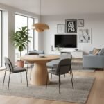 This contemporary dining set is designed to bring elegance and comfort to your home. The rectangular wooden dining table features a ribbed panel base and a smooth finish, combining durability with modern style. Accompanied by six upholstered chairs with curved backs and cushioned seats, the set provides both support and sophistication, making it perfect for everyday meals or special gatherings.