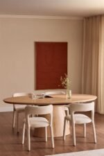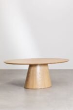 Elevate your dining space with this beautifully crafted oval dining table, designed with a sleek tapered pedestal base and a smooth, natural wood finish. Its sculptural silhouette adds a touch of modern sophistication, while the spacious oval top creates a warm and welcoming setting for family meals, festive gatherings, or stylish dinner parties. Perfect for contemporary, Scandinavian, and minimalist interiors, this table becomes an eye-catching centerpiece in any home.