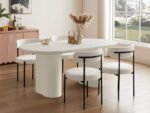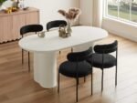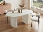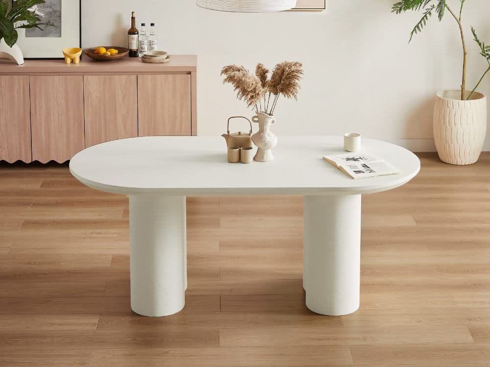 70.8” Stone Top Solid Wood Base Oval Modern Dining Table