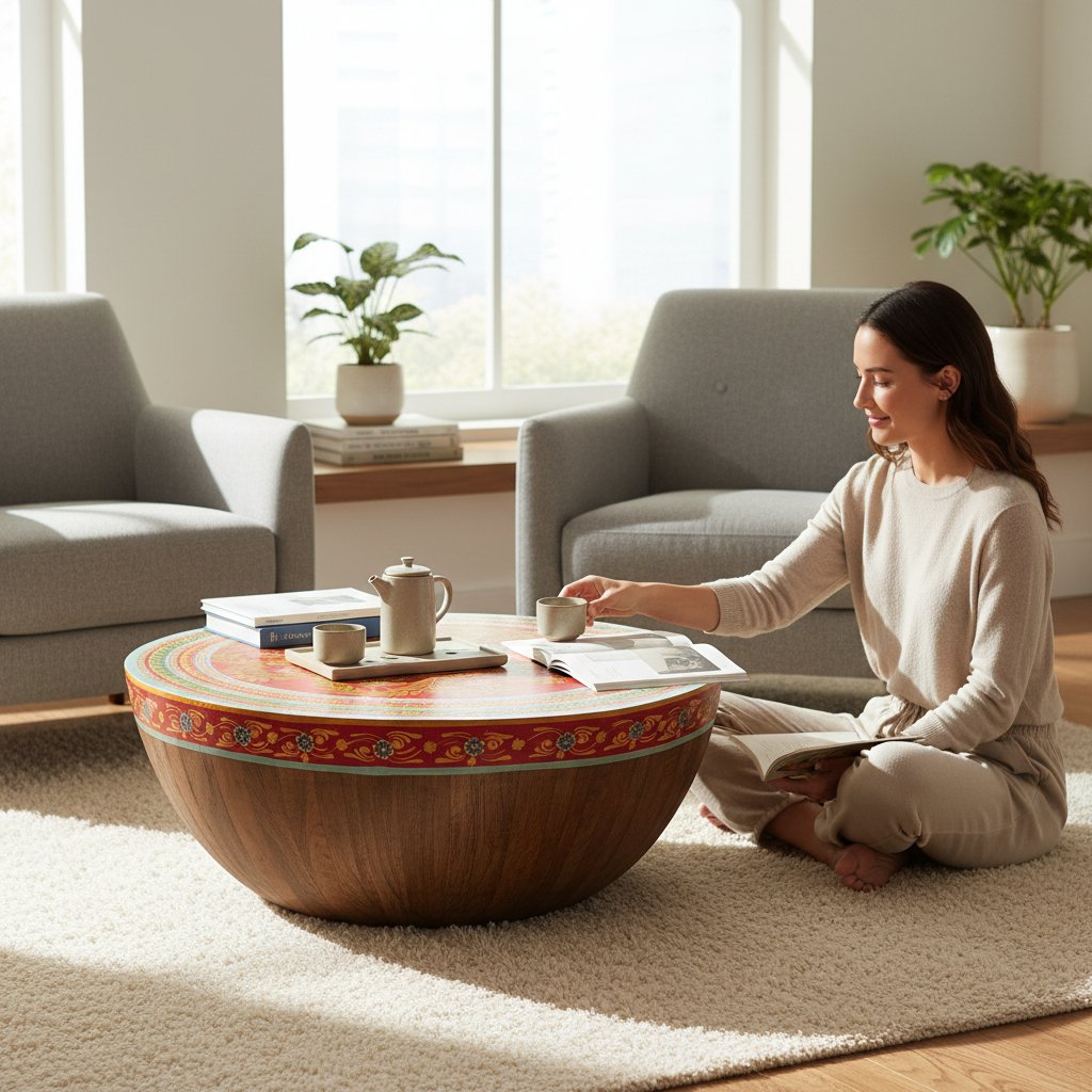 Wooden Handicraft Side Drum Coffee-Sofa Central Table