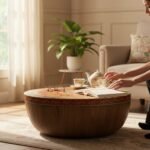 Solid Wood Round Drum Coffee Table – Walnut Finish