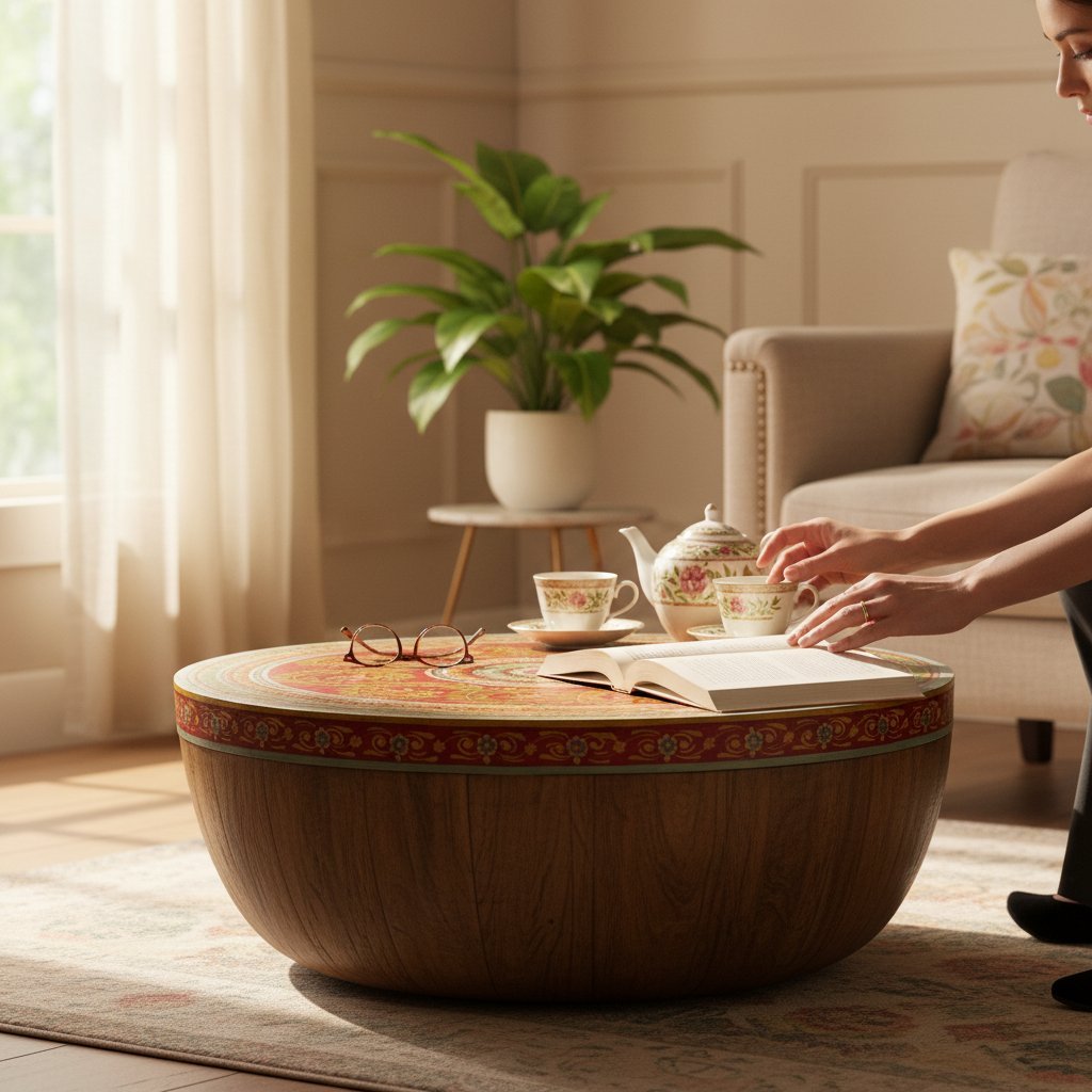 Wooden Round Copper Coffee Table ₹15,999 – ₹28,999Price range: ₹15,999 through ₹28,999
