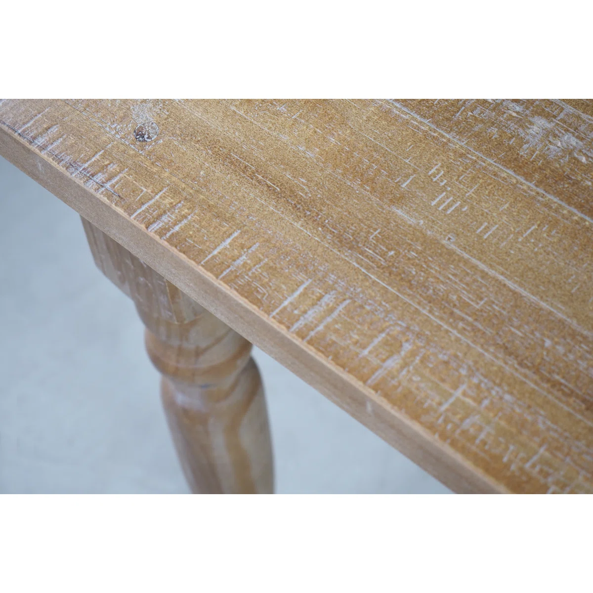 The finish is designed to accentuate the unique grain, knots, and natural textures in the wood panels; and each piece is sanded and distressed by the hand leading to variations in the color and texture that make every unit unique. This distressed finish is very durable and easy to touch up.
